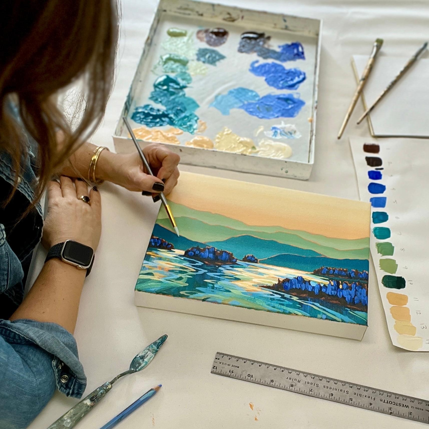 Structure, Simplicity & Confident, Painterly Results: We focus on simplifying complex scenes into values, shapes, and atmosphere so you can paint landscapes that feel loose, modern, and expressive—without getting lost in detail. You’ll learn how to create depth, space, and light through purposeful brushwork, thoughtful composition, and refined colour choices.
