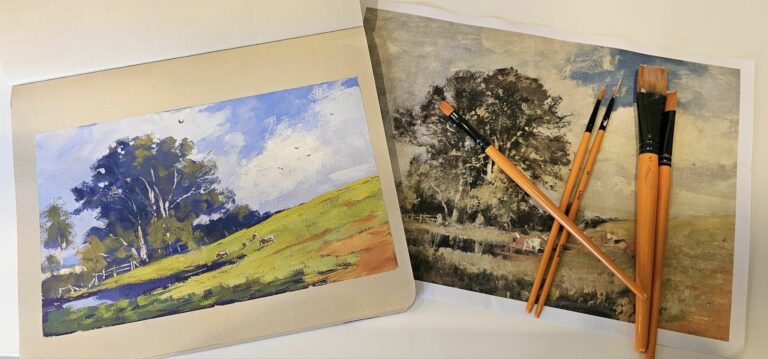The method works beautifully in acrylics or oils. I’ll explain materials and options so you can adapt to what you prefer to use. The principles of value, composition, colour and edges remain the same.